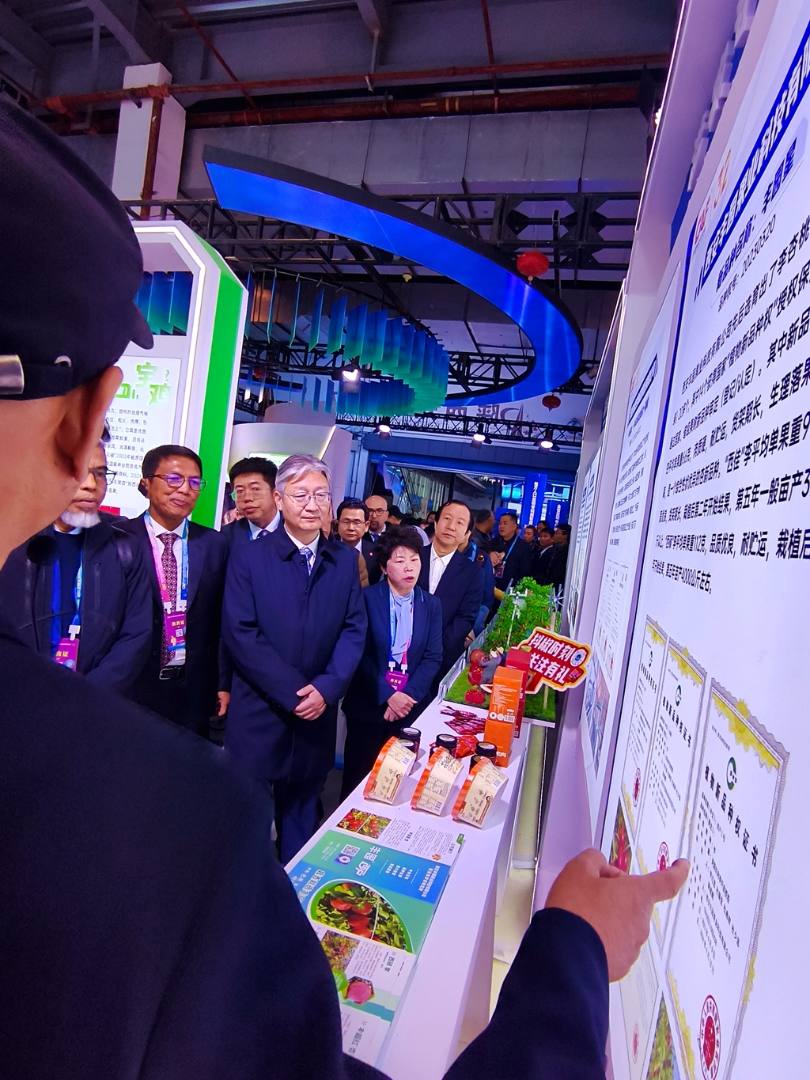 10月25日,国家、省知识产权局领导,带领欧盟十国主管知识产权工作的官员,走进杨凌农高会省知识产权局展区,到西安丰园果业科技有公司展位视参观李杏新品种育种成果!